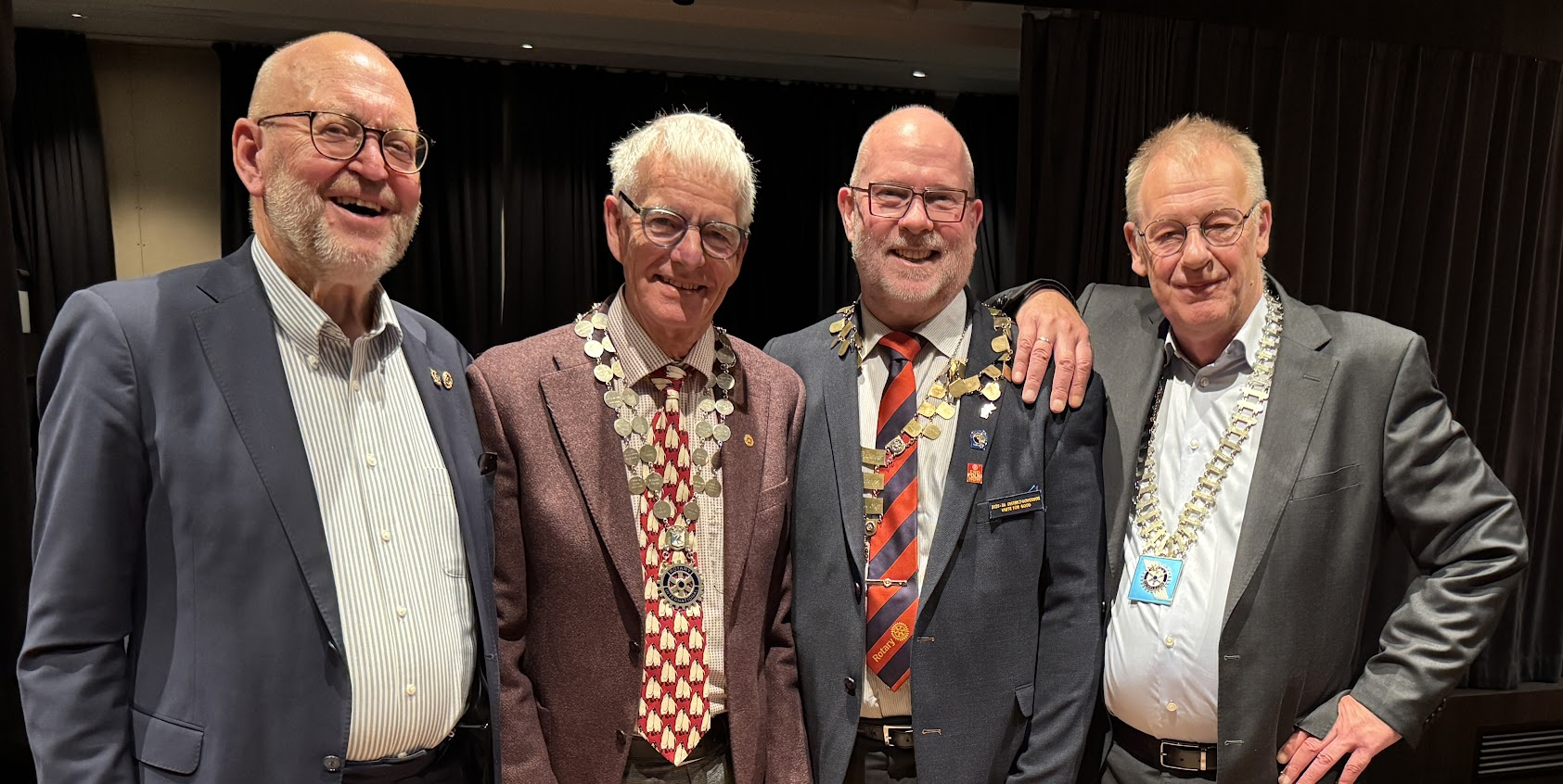 Fra venstre assisterende guvernør Arild Evensen, president Lillehammer Rotary Jan Erik Svendsen, distriktsguvernør Morten Moe og president Mesna Rotary Tore Feiring