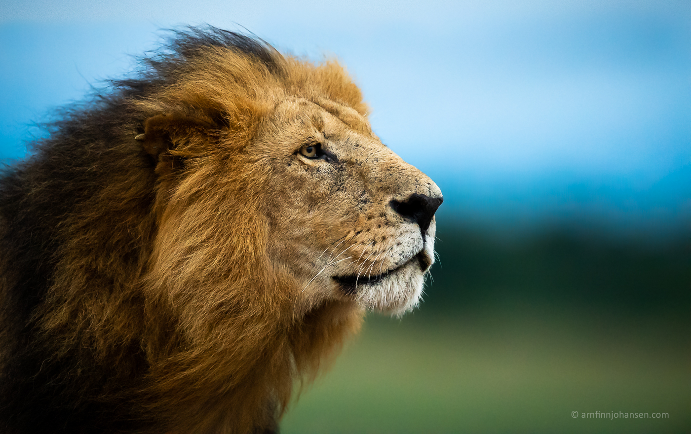 Portrettbilde av en hannløve.
