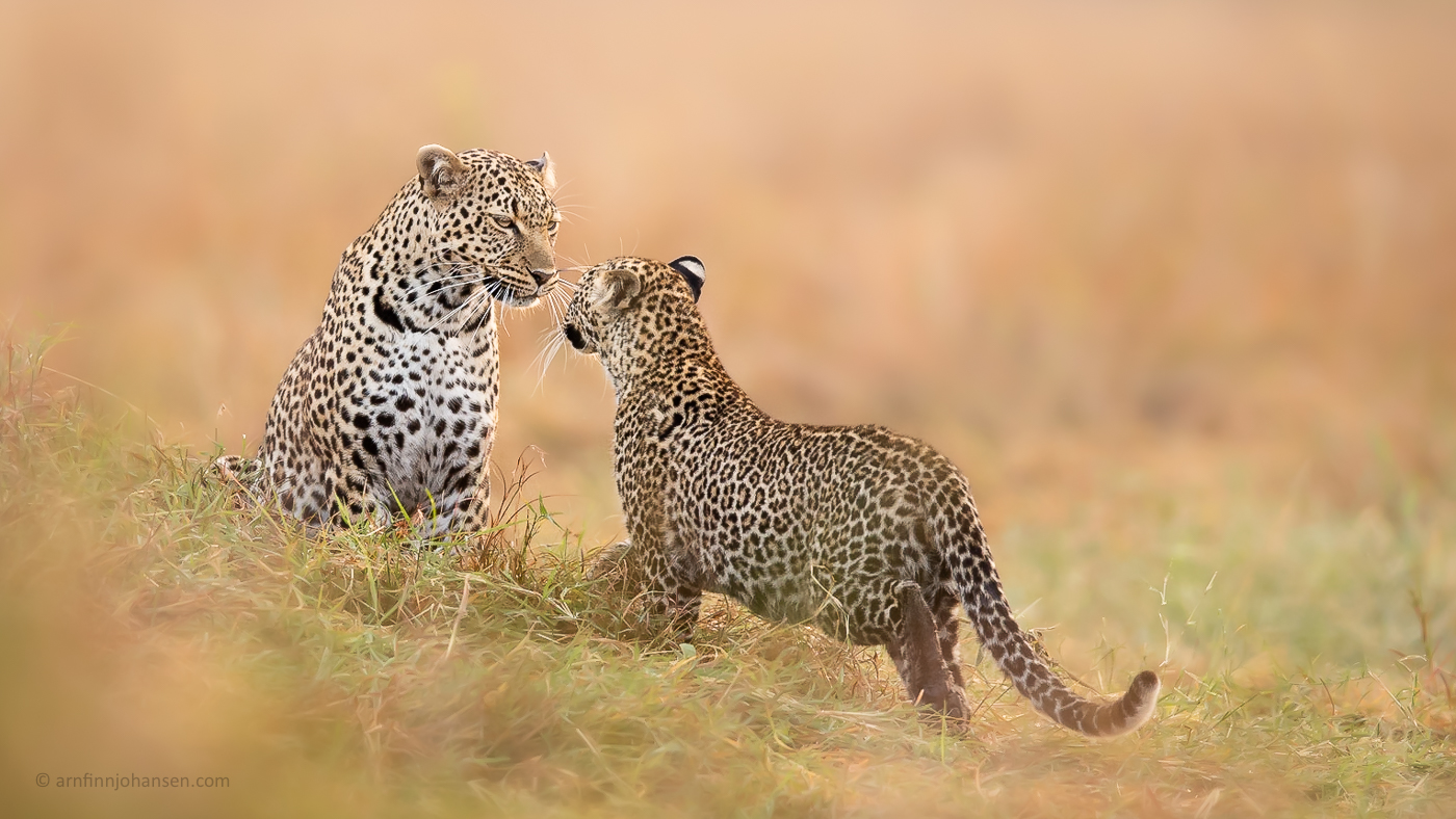 Leopardmor med barn med hovedmotivet i sentrum med uklar for- og bakgrunn.-