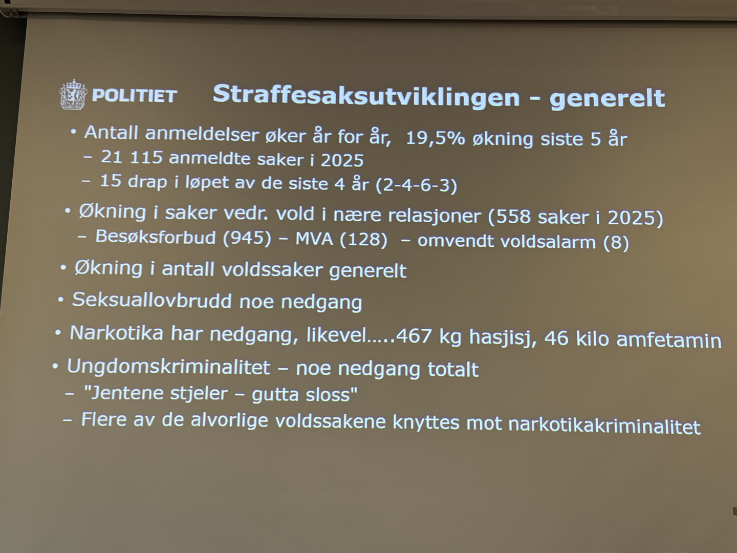 • Status kriminalitetsutviklingen